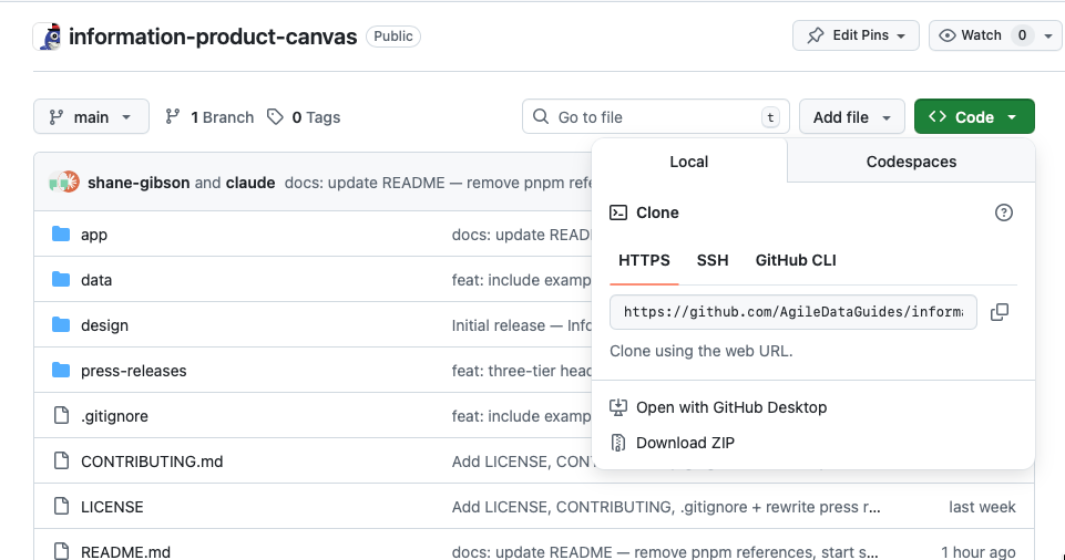 So I have always had a task on my backlog to build a standalone app version of the Information Product Canvas. Something that keeps the visual canvas format but adds the ability to manage multiple canvases, search across them, and export them in useful formats. I just never got around to prioritising the spondoolies to pay somebody to build it.